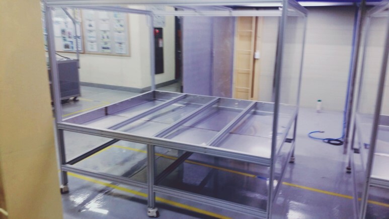 89.공장 내에 설치한 알루미늄 프로파일 기계 프레임 건